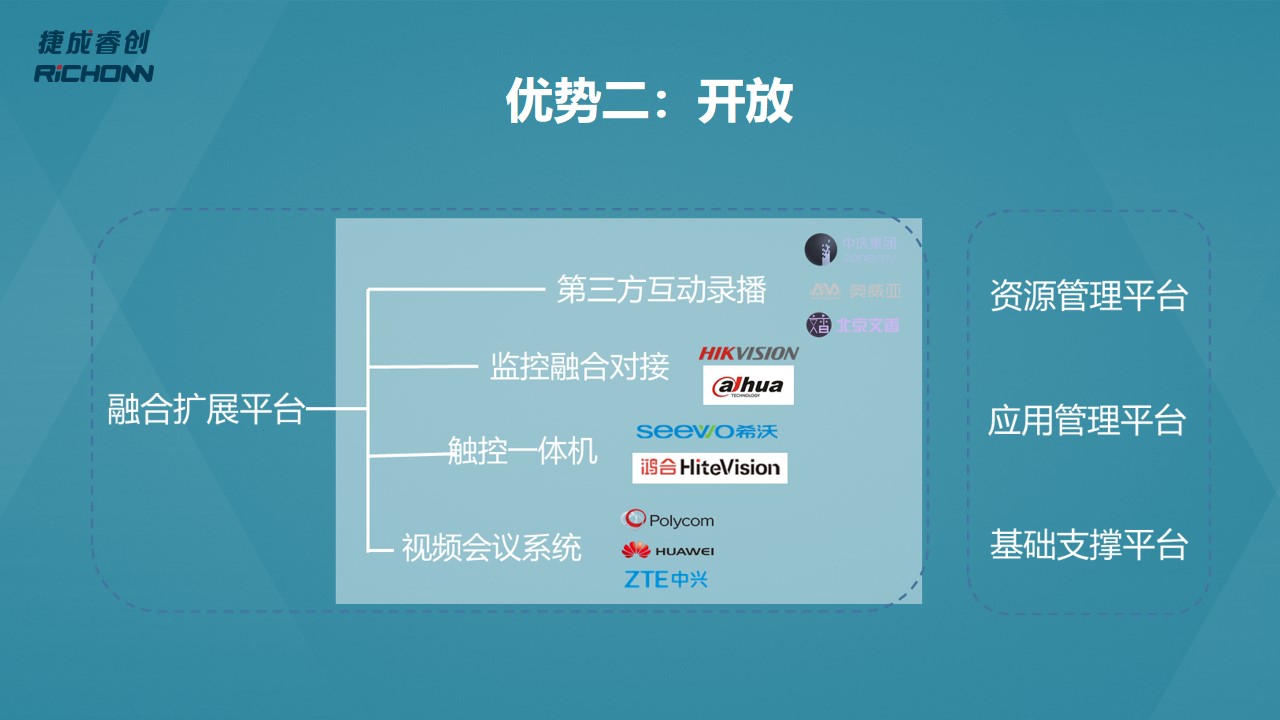 融视频管理平台,,集统一管理、、、、多品牌融合、、多应用融合、、、资源汇聚和发布、、、数据整合及分析等功能于一身,,,助力用户于教育多媒体的教、、、、学、、、、管、、研等应用上进行规范化管理与科学决策支持。。