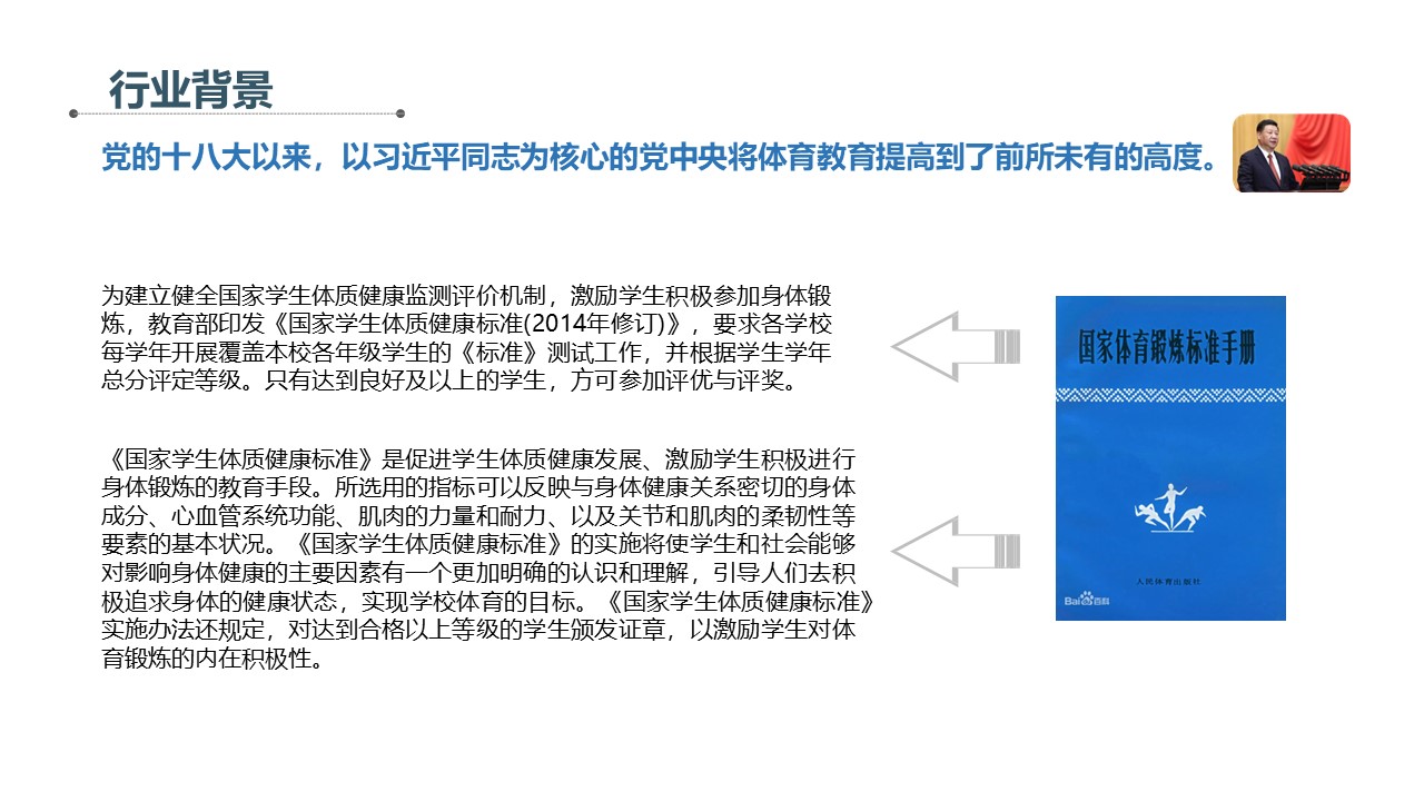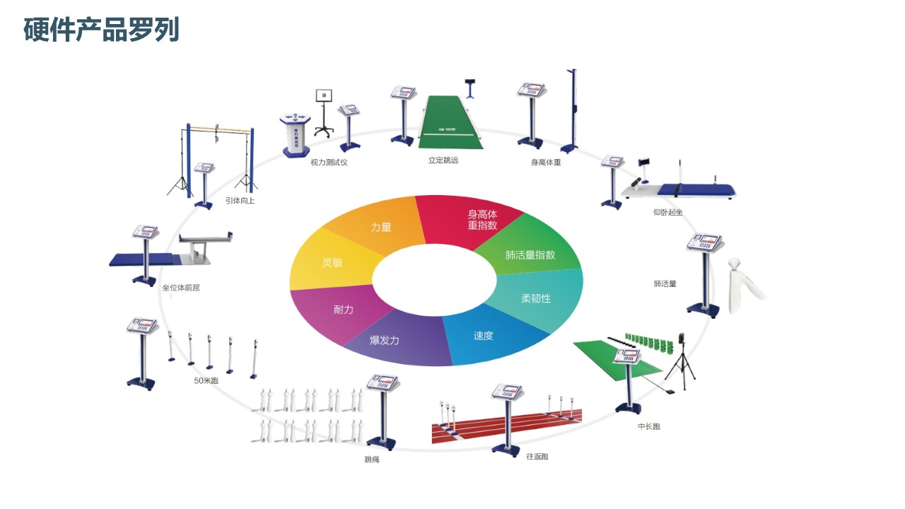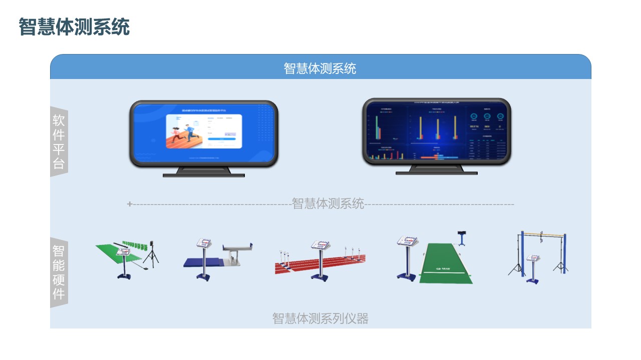 智慧体测系统由体质测试硬件设备和智慧体测云平台组成,,,,帮助教育部门和学校全面清晰了解学生体质健康水平,,优化教师课程设计提升班级体测水平,,为学生提供个性运动指导方案及相关课程。。。
