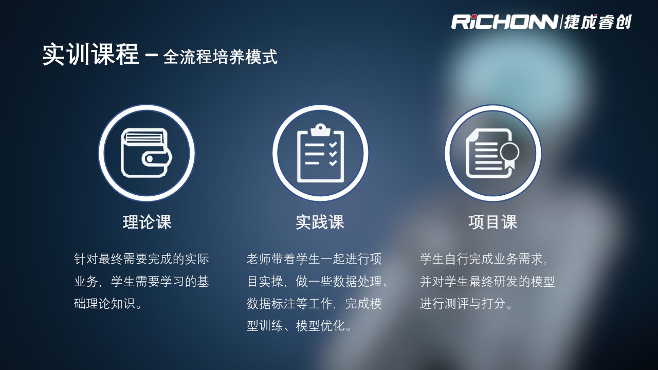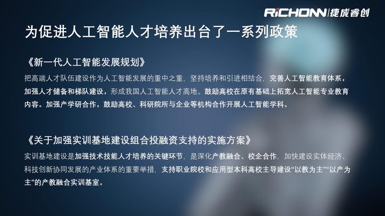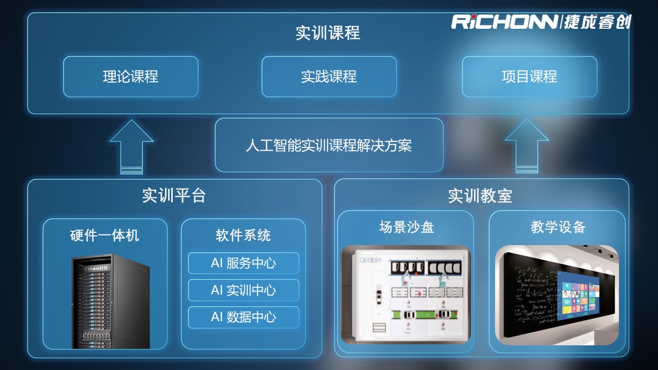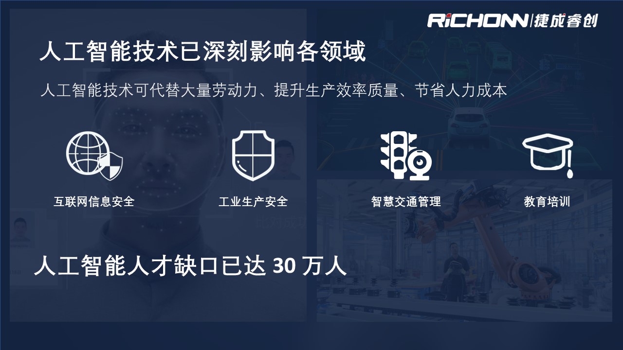 人工智能实训室通过“零门槛、、、、全流程、、、可扩展、、双元双真”的解决方案,,,,与学校进行课程共建,,,,支撑AI产业急需的应用型人才的培养。。。。